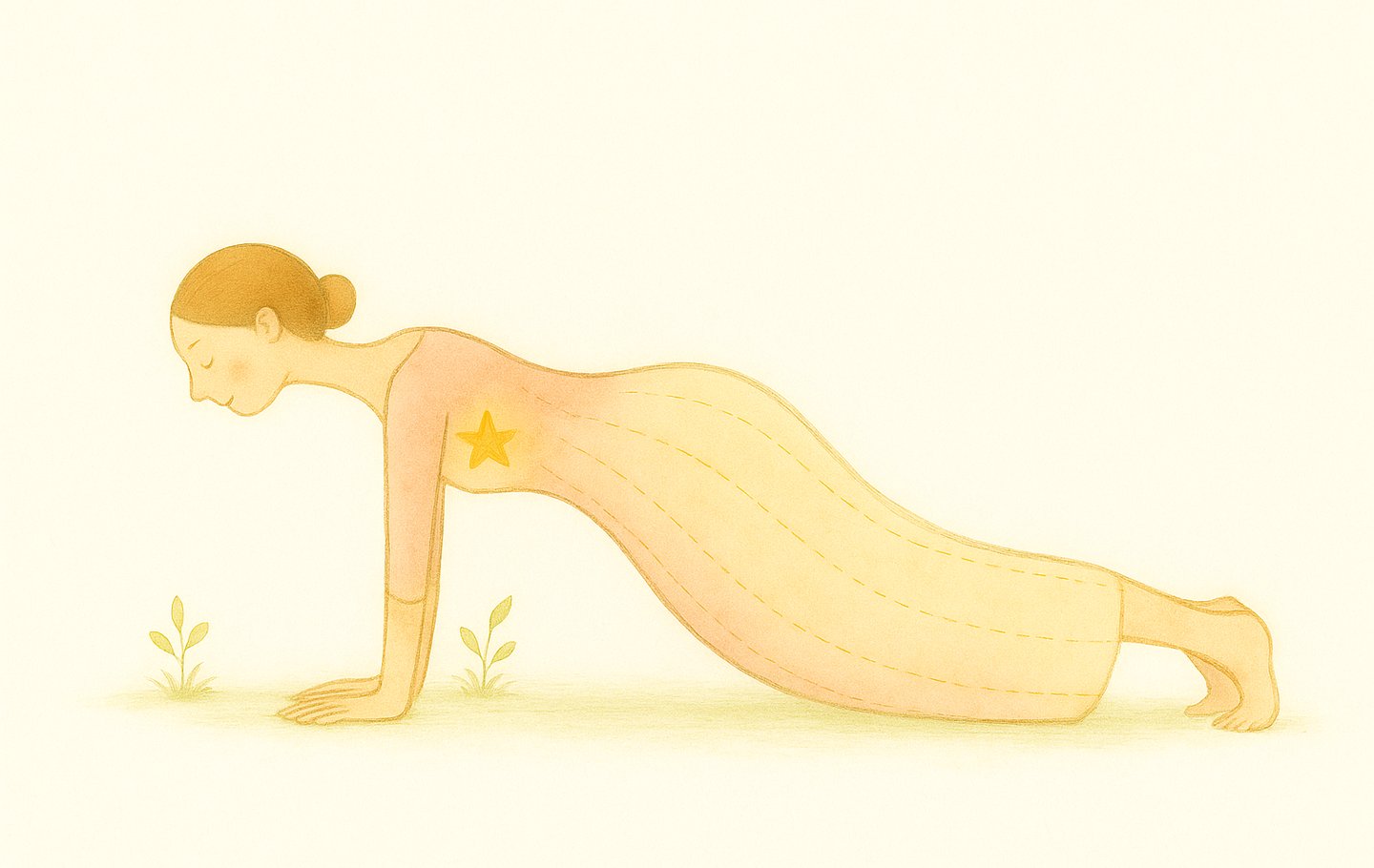 Spanne den Bauch leicht an, sodass der untere Rücken lang bleibt und nicht durchhängt.