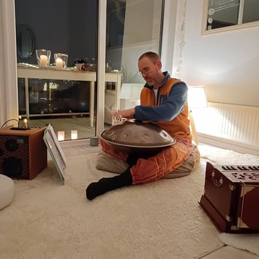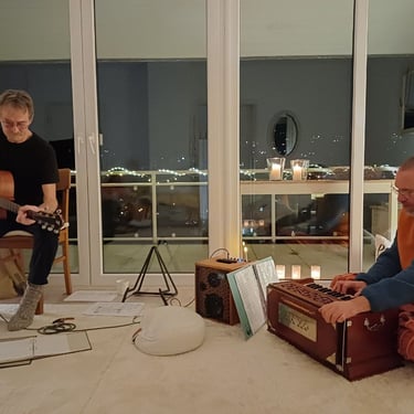Tauche mit uns ein in die heilsame Welt der Mantras, Gitarrenklänge, Harmonium- und Handpanmusik.
