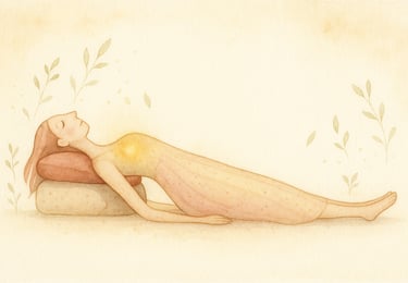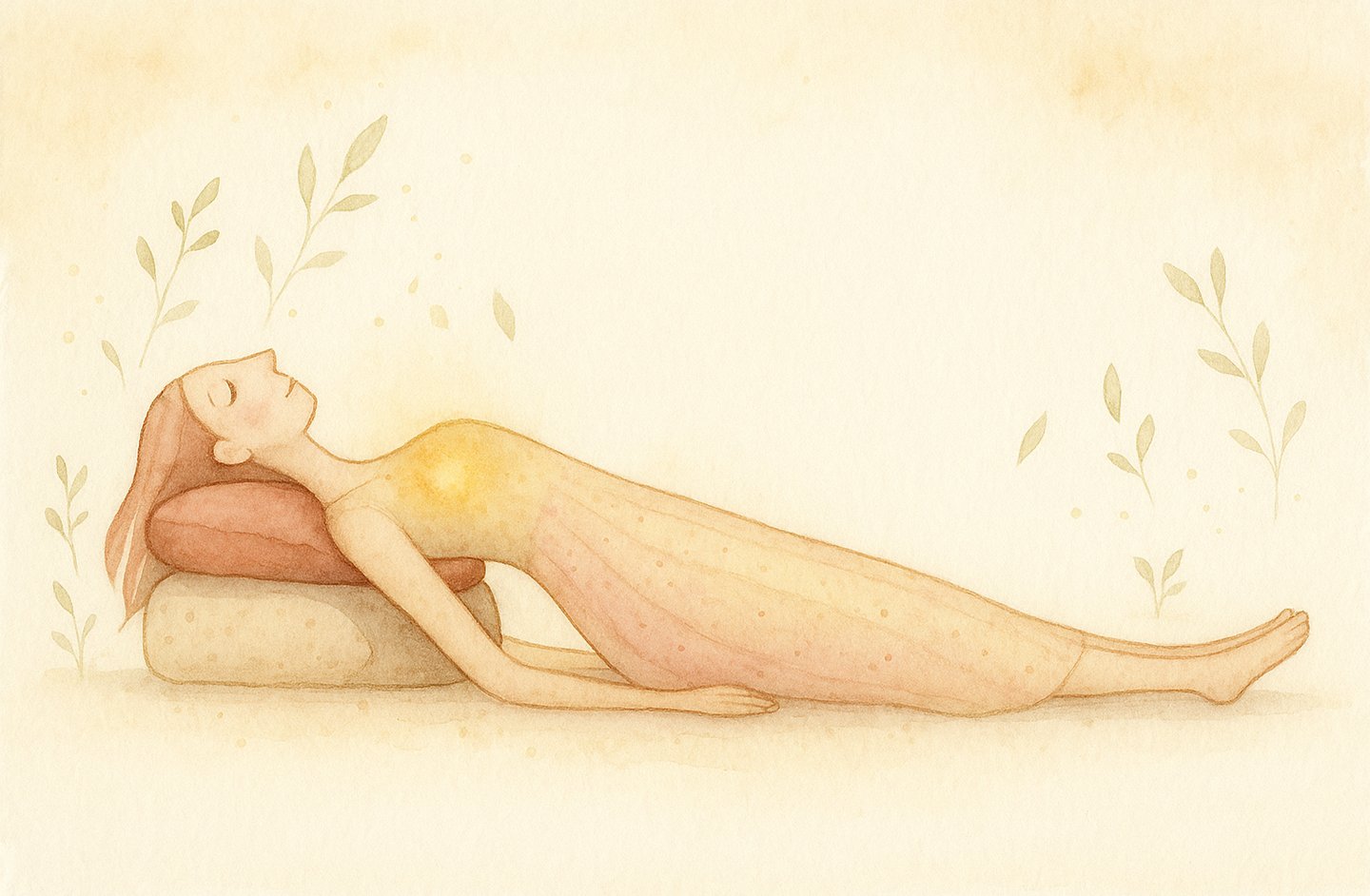 Pilatesball, Block oder Bolster quer unter den Schulterblättern – öffnet sanft den Herzraum.