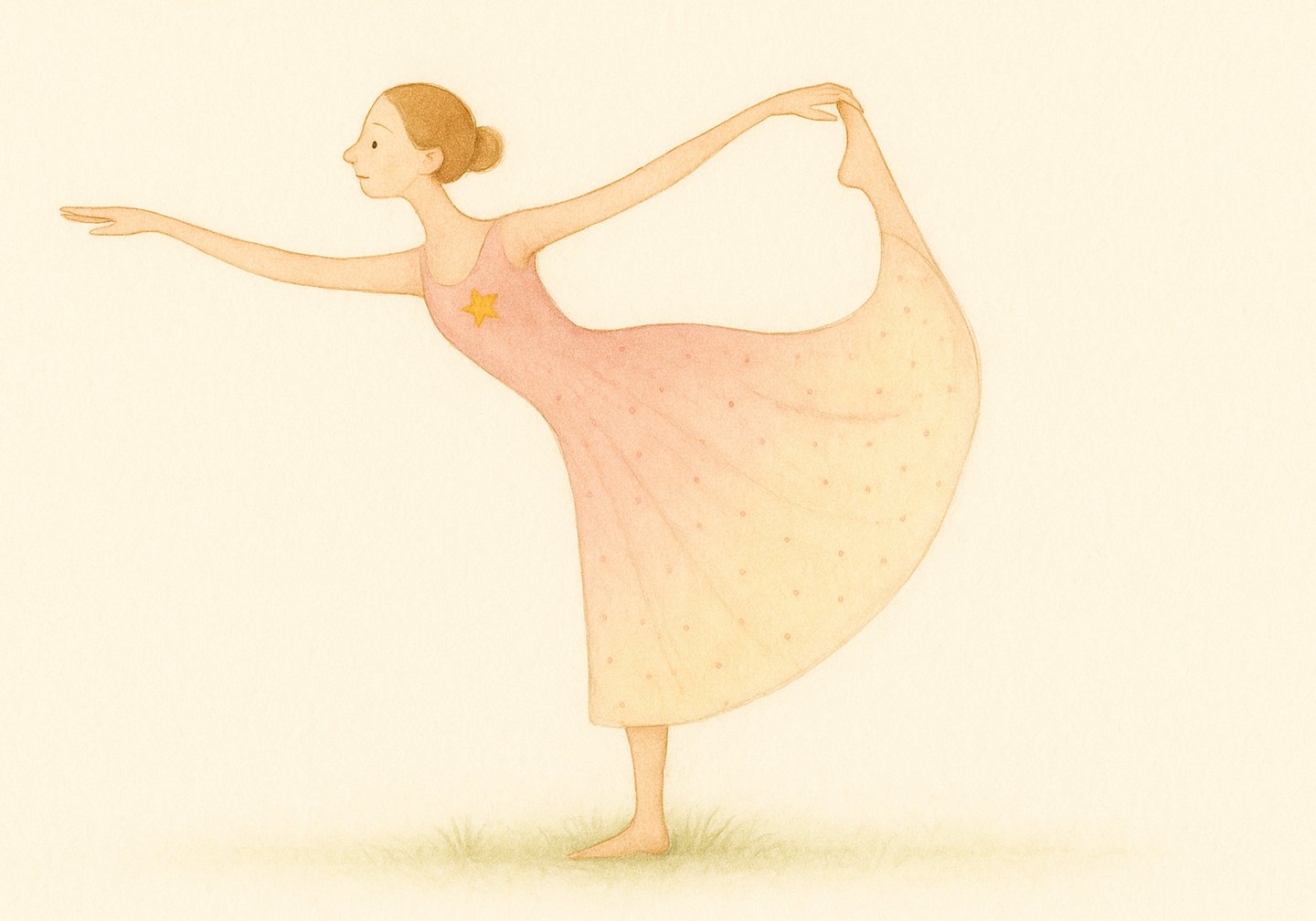 Wie eine Tänzerin, die mit anmutiger Leichtigkeit zwischen Himmel und Erde schwebt, lädt dich diese Asana ein, Balance und Hingabe zu vereinen.