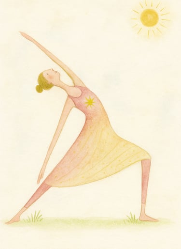 Stell dir vor, du bist wie eine mächtige, friedvolle Statue auf einem Feld. Deine Beine wurzeln tief, dein Oberkörper richtet sich auf, dein Herz strahlt weit in die Welt. Du bist kraftvoll – und zugleich von innerem Frieden durchdrungen.