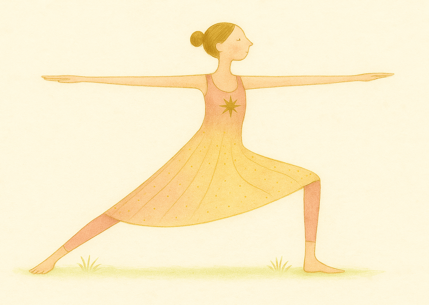 Diese Haltung ist eine Einladung, deinen Raum einzunehmen – ruhig, wach, präsent. Du stehst zwischen Vergangenheit und Zukunft, mit weitem Blick und offenem Herzen.