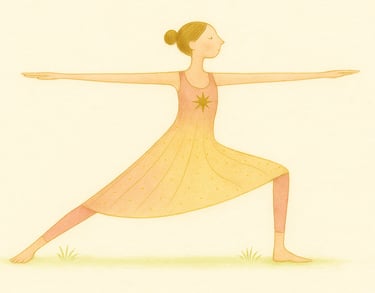 Virabhadrasana II steht für Ausrichtung, Klarheit und den Mut, genau da zu stehen, wo du bist – in deiner Wahrheit, in deiner Kraft. Es ist kein Kämpfen, sondern ein Erinnern: an deine Standhaftigkeit, deine Aufrichtung, dein inneres Ja.